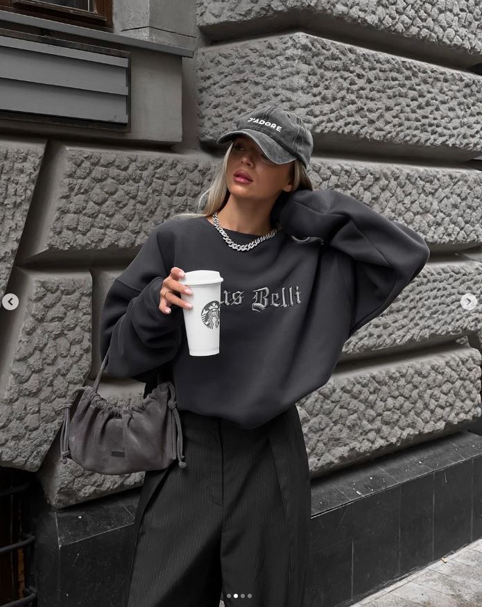 심플한 레터링 맨투맨에 모자와 백까지 모두 그레이로 통일하고, 컨버스로 발끝까지 무채색 코디를 하니 시크한 캐주얼룩이 되었어요