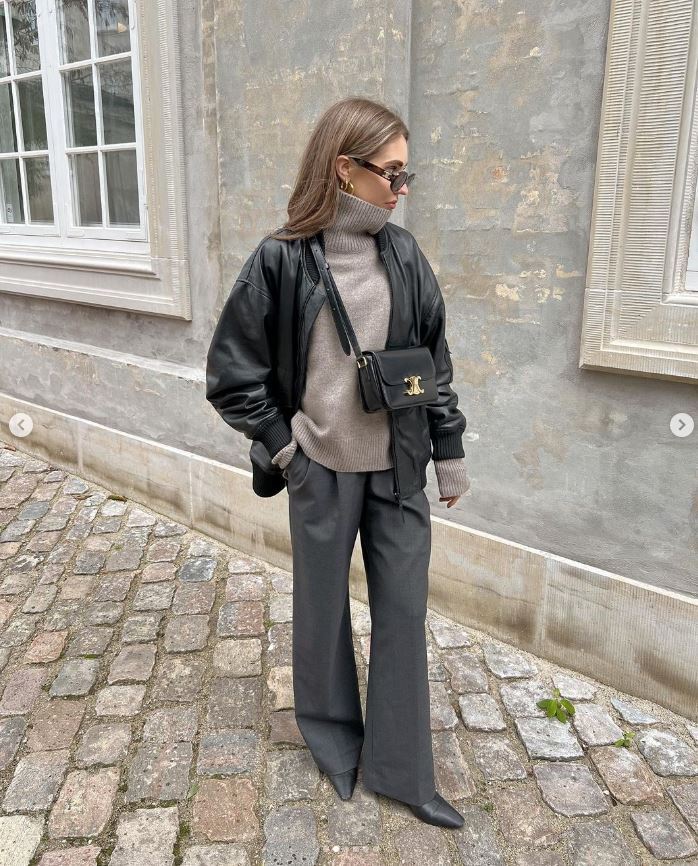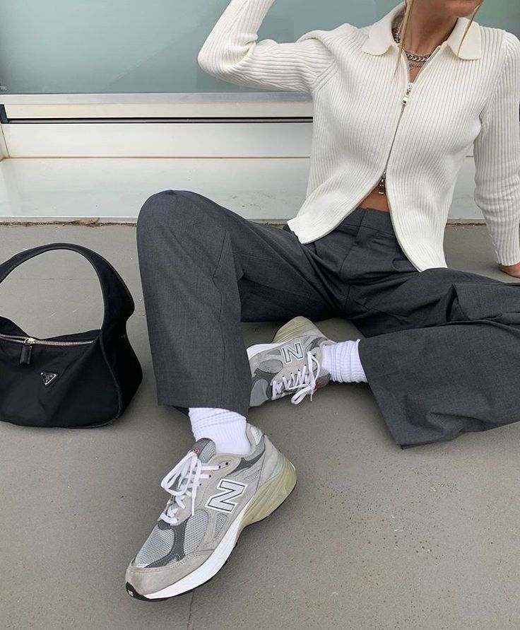 넉넉한 터틀넥 니트, 와이드핏 슬랙스, 여기에 운동화를 매치한 것까지 우리 흔하게 입는 데일리룩이죠