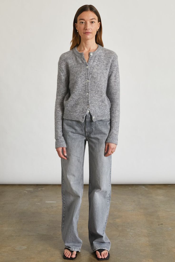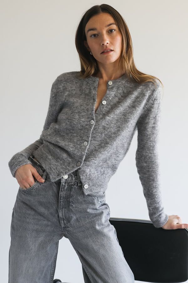 그레이 카디건은 블루 셔츠와의 궁합도 좋습니다